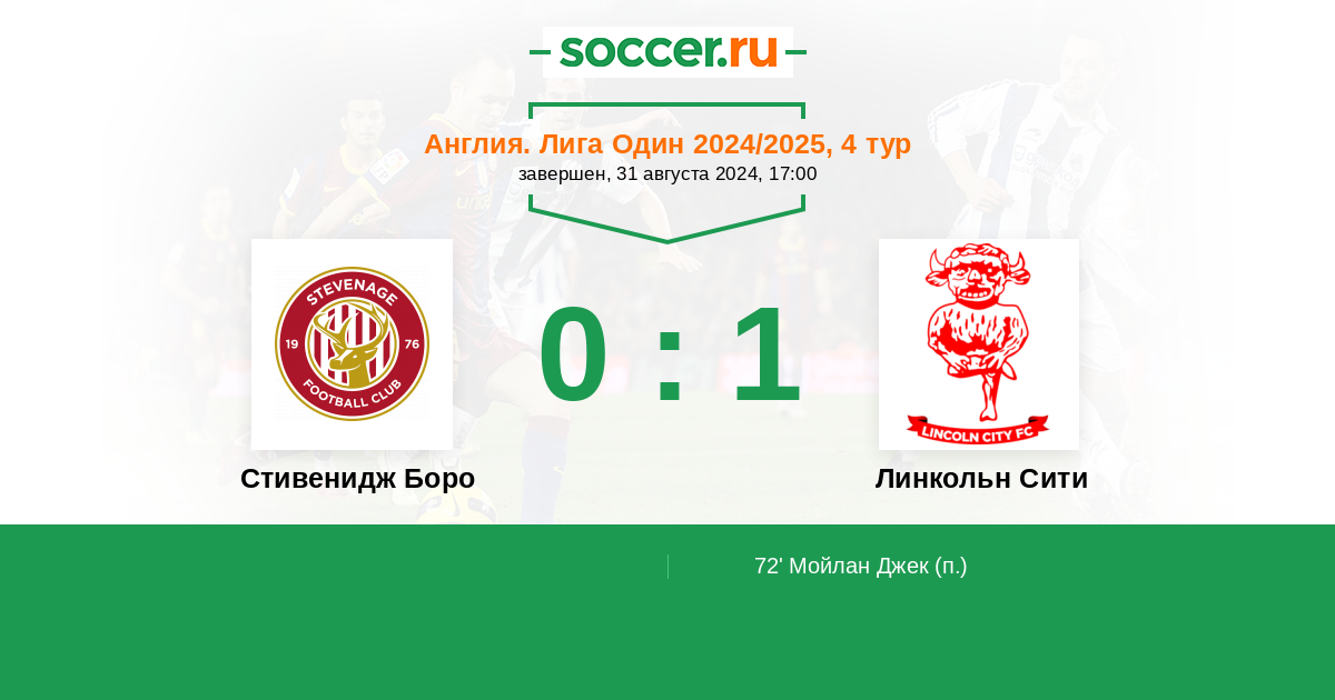Протокол матча Стивенидж Боро против Линкольн Сити