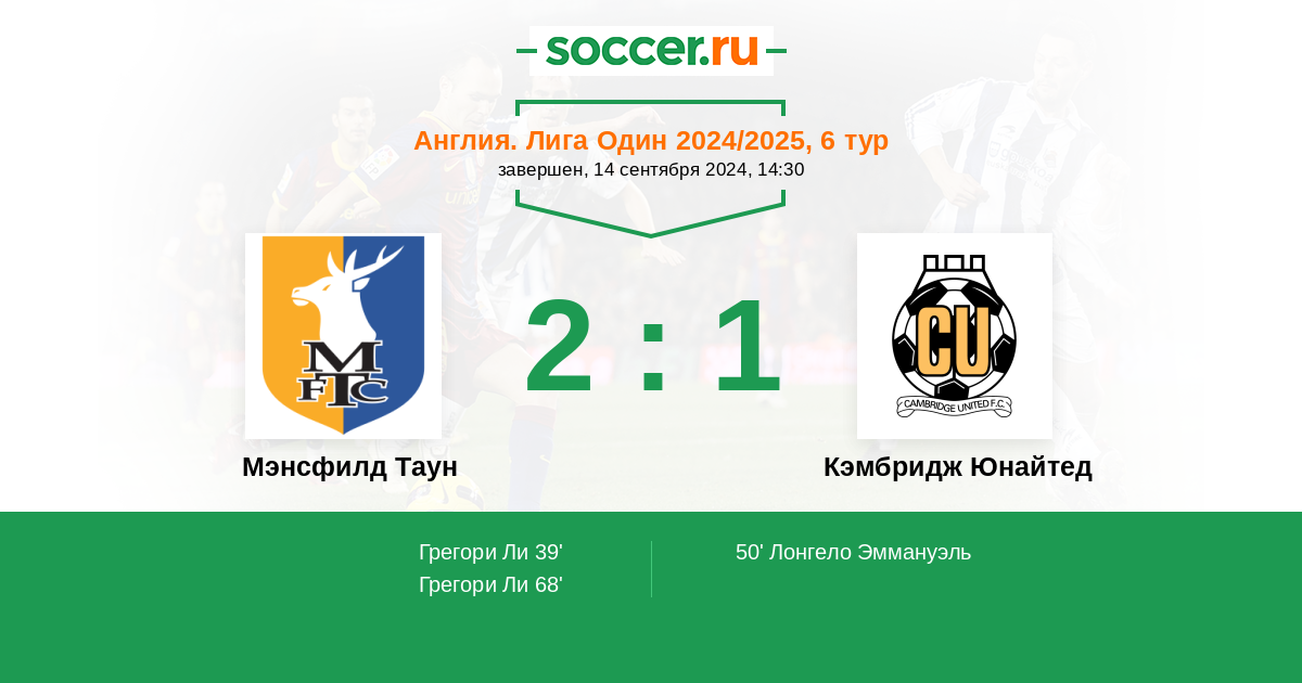 Протокол матча Мэнсфилд Таун против Кэмбридж Юнайтед