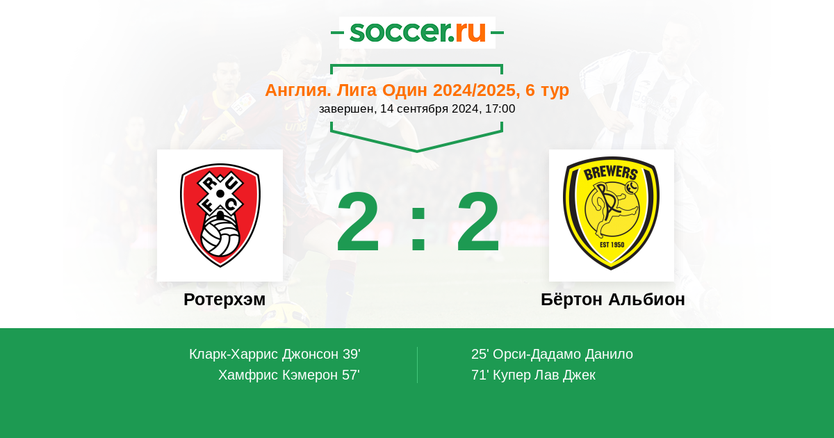 Протокол матча Ротерхэм против Бёртон Альбион