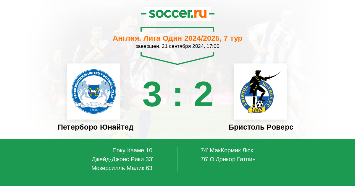 Протокол матча Петерборо Юнайтед против Бристоль Роверс