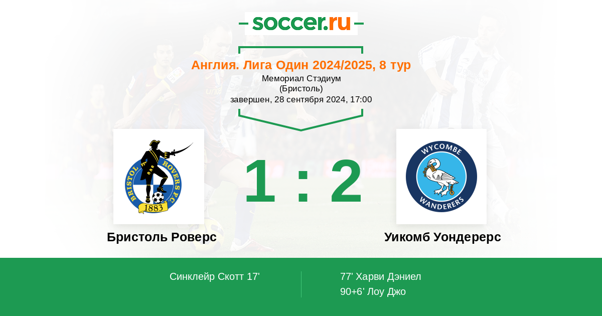 Протокол матча Бристоль Роверс против Уикомб Уондерерс
