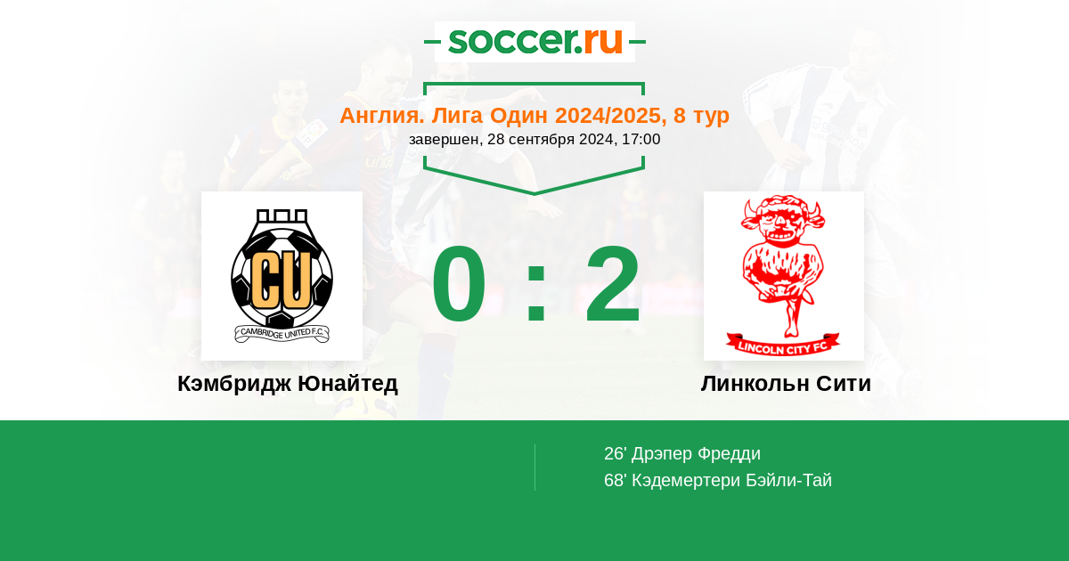 Протокол матча Кэмбридж Юнайтед против Линкольн Сити