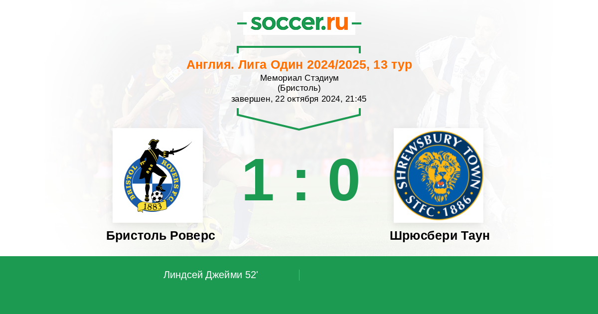 Протокол матча Бристоль Роверс против Шрюсбери Таун