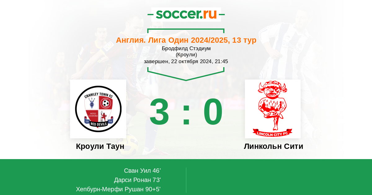 Протокол матча Кроули Таун против Линкольн Сити