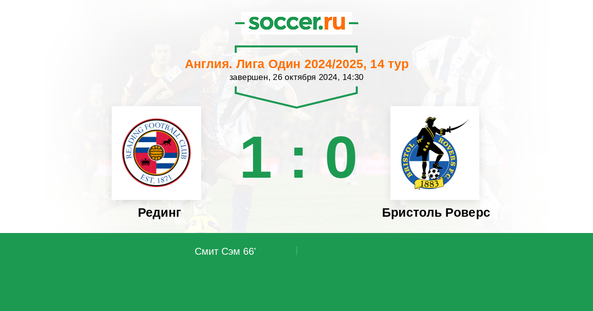 Протокол матча Рединг против Бристоль Роверс
