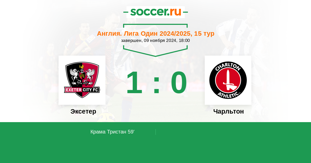Протокол матча Эксетер против Чарльтон