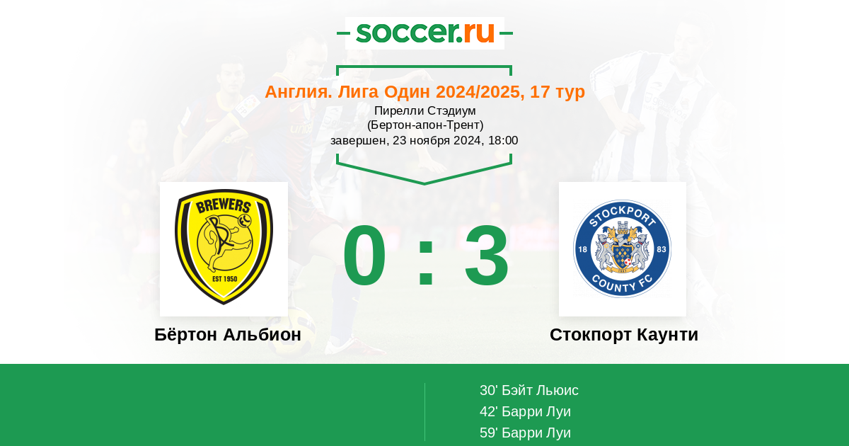 Протокол матча Бёртон Альбион против Стокпорт Каунти