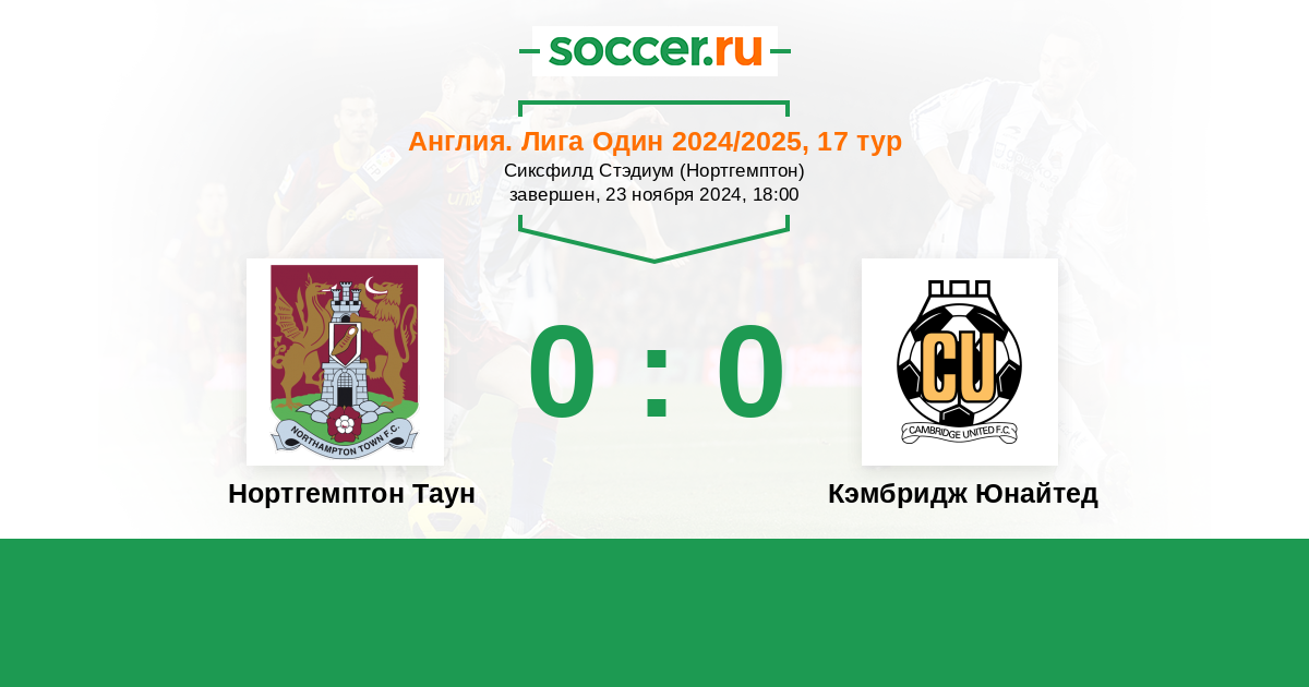 Протокол матча Нортгемптон Таун против Кэмбридж Юнайтед