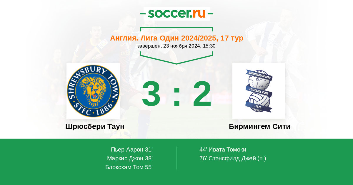 Протокол матча Шрюсбери Таун против Бирмингем Сити