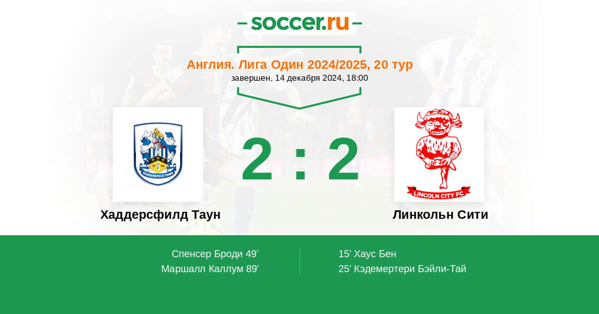 Протокол матча Хаддерсфилд Таун против Линкольн Сити