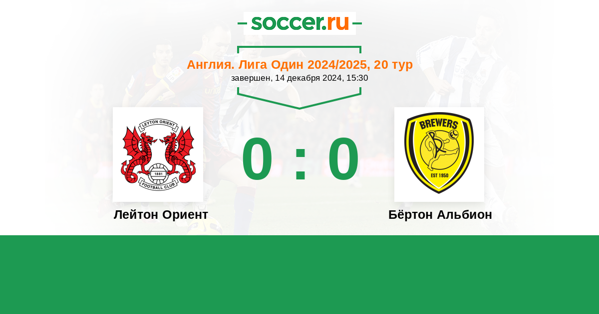Протокол матча Лейтон Ориент против Бёртон Альбион