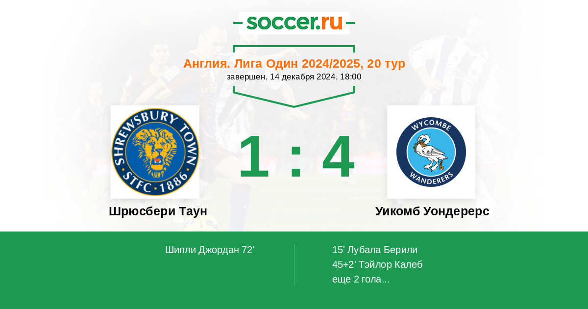 Протокол матча Шрюсбери Таун против Уикомб Уондерерс