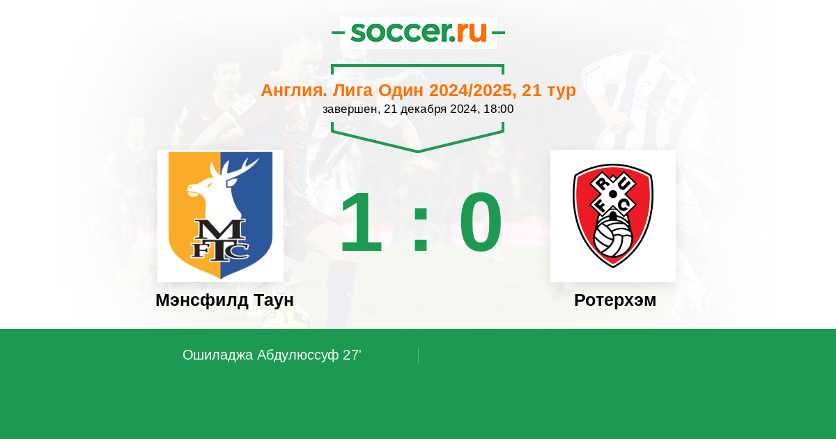 Протокол матча Мэнсфилд Таун против Ротерхэм