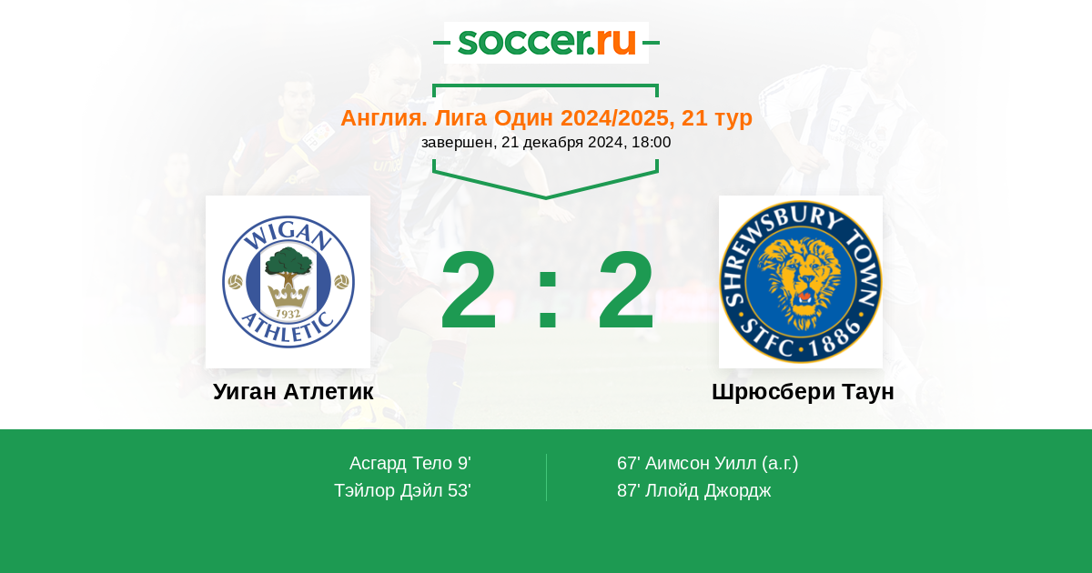Протокол матча Уиган Атлетик против Шрюсбери Таун