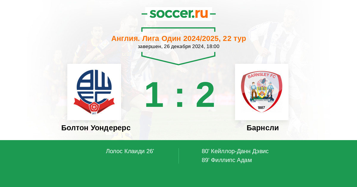 Протокол матча Болтон Уондерерс против Барнсли