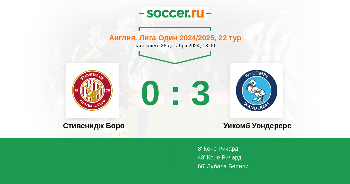 Протокол матча Стивенидж Боро против Уикомб Уондерерс