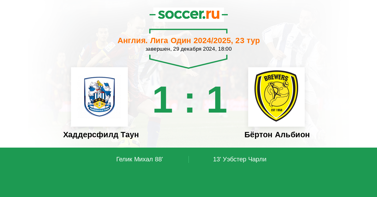 Протокол матча Хаддерсфилд Таун против Бёртон Альбион