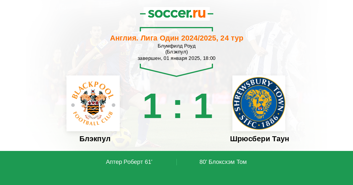 Протокол матча Блэкпул против Шрюсбери Таун