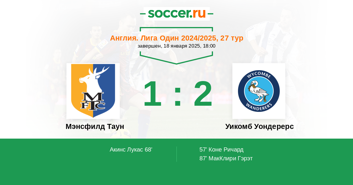 Протокол матча Мэнсфилд Таун против Уикомб Уондерерс