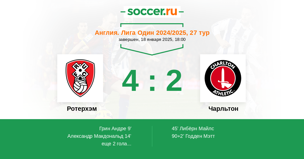 Протокол матча Ротерхэм против Чарльтон