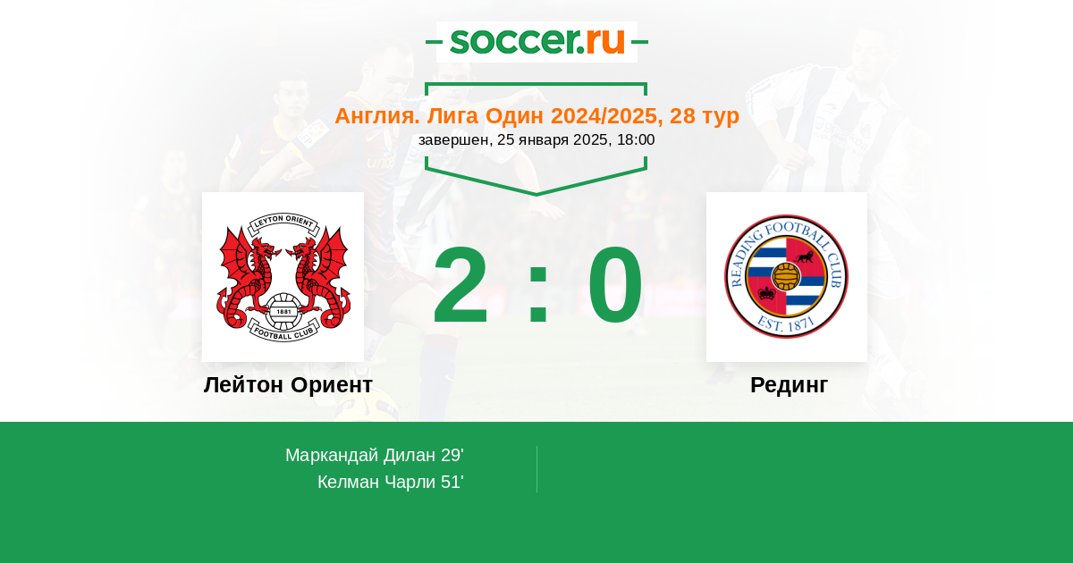 Протокол матча Лейтон Ориент против Рединг