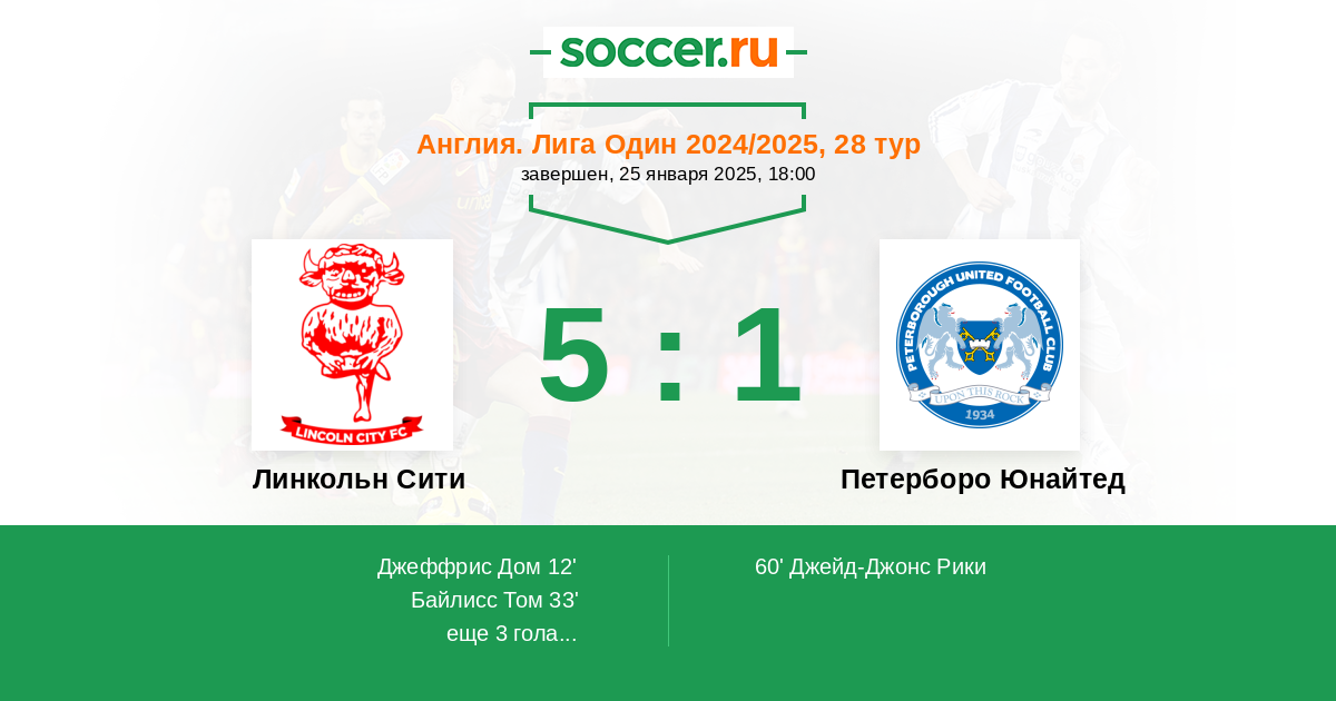 Протокол матча Линкольн Сити против Петерборо Юнайтед