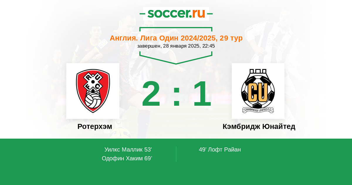 Протокол матча Ротерхэм против Кэмбридж Юнайтед