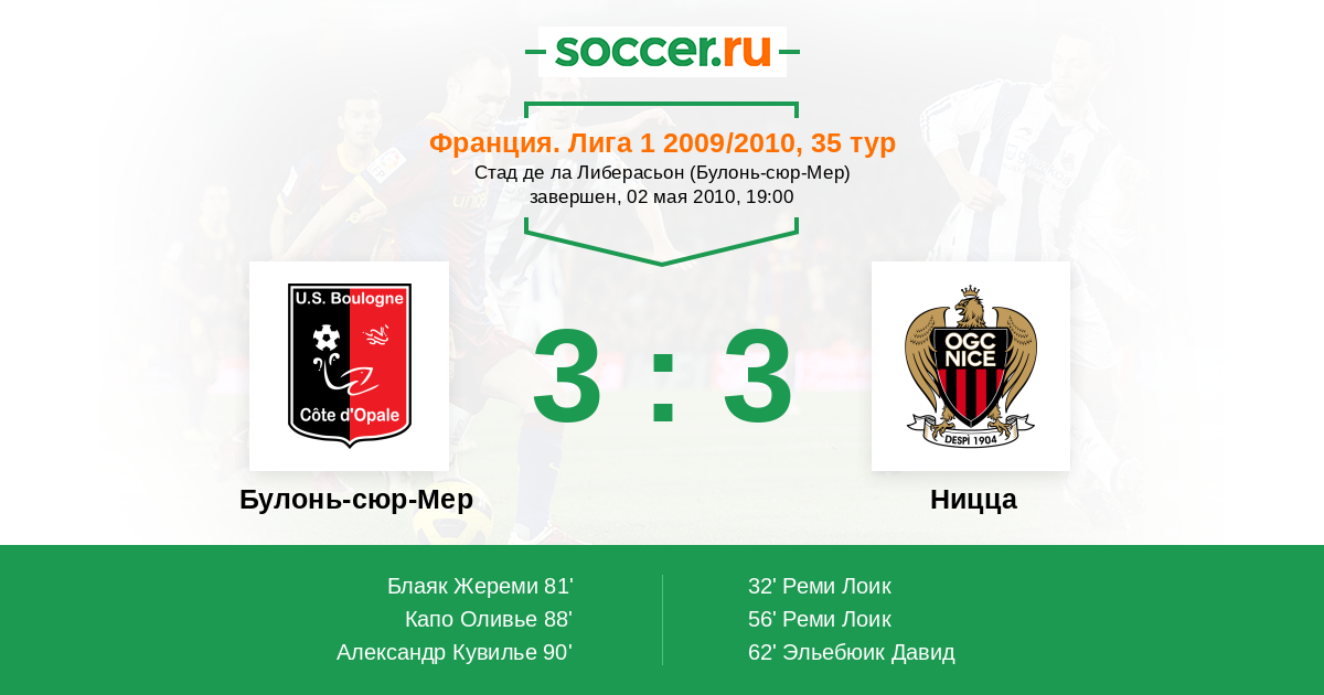 Протокол матча Булонь-сюр-Мер против Ницца