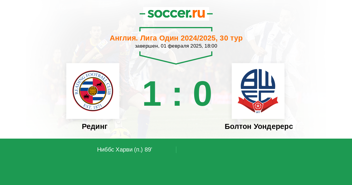 Протокол матча Рединг против Болтон Уондерерс