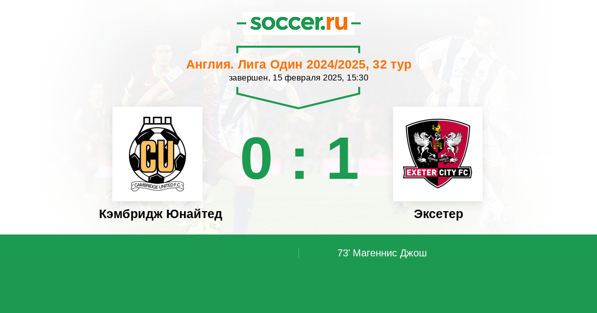 Протокол матча Кэмбридж Юнайтед против Эксетер