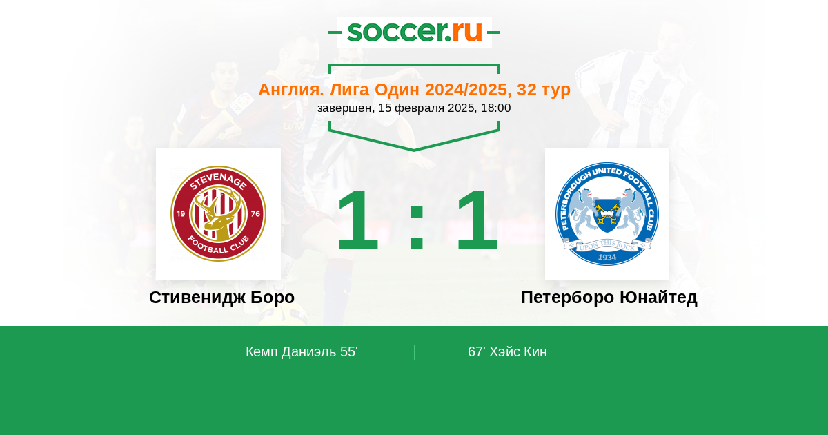 Протокол матча Стивенидж Боро против Петерборо Юнайтед