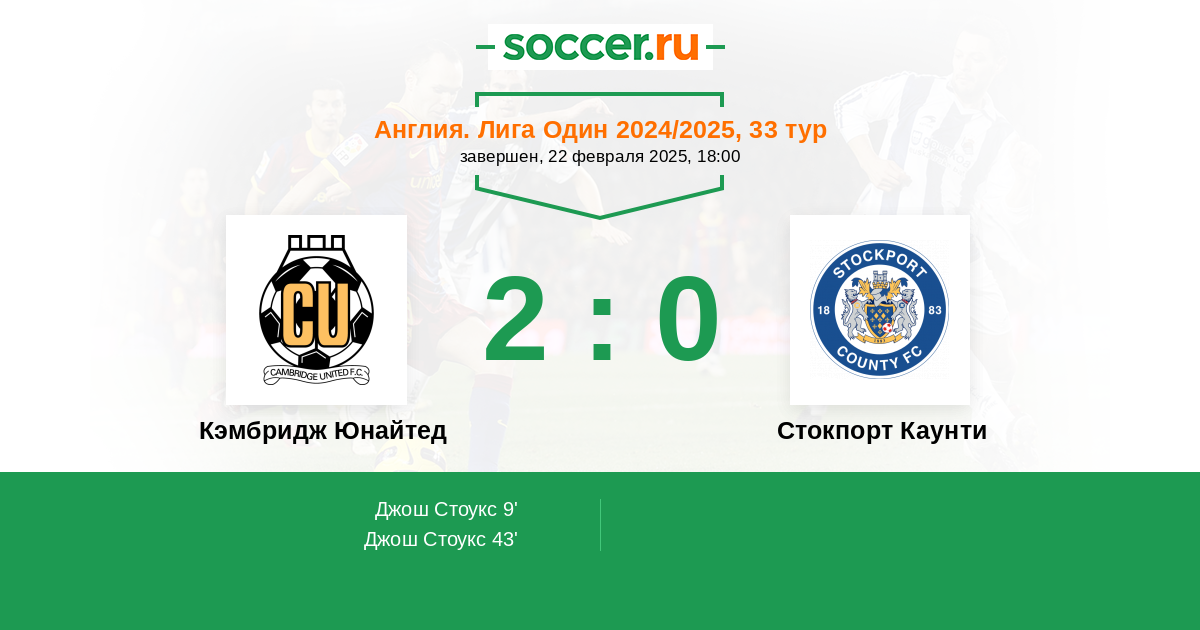 Протокол матча Кэмбридж Юнайтед против Стокпорт Каунти