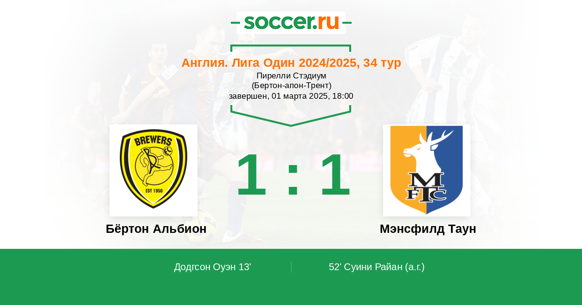 Протокол матча Бёртон Альбион против Мэнсфилд Таун
