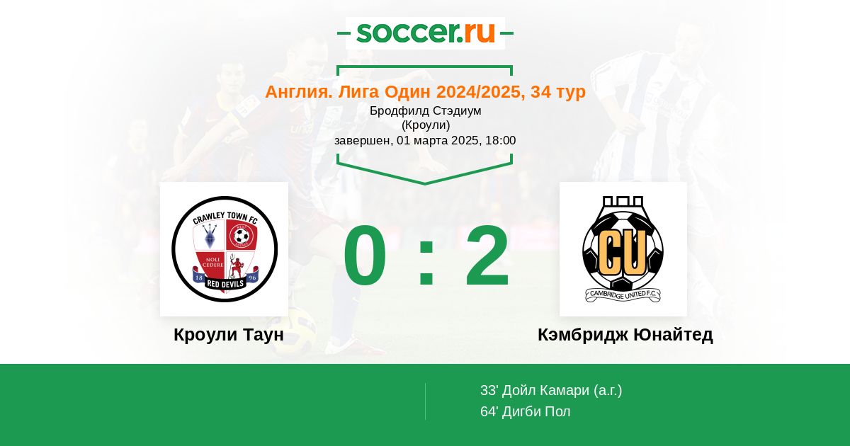 Протокол матча Кроули Таун против Кэмбридж Юнайтед