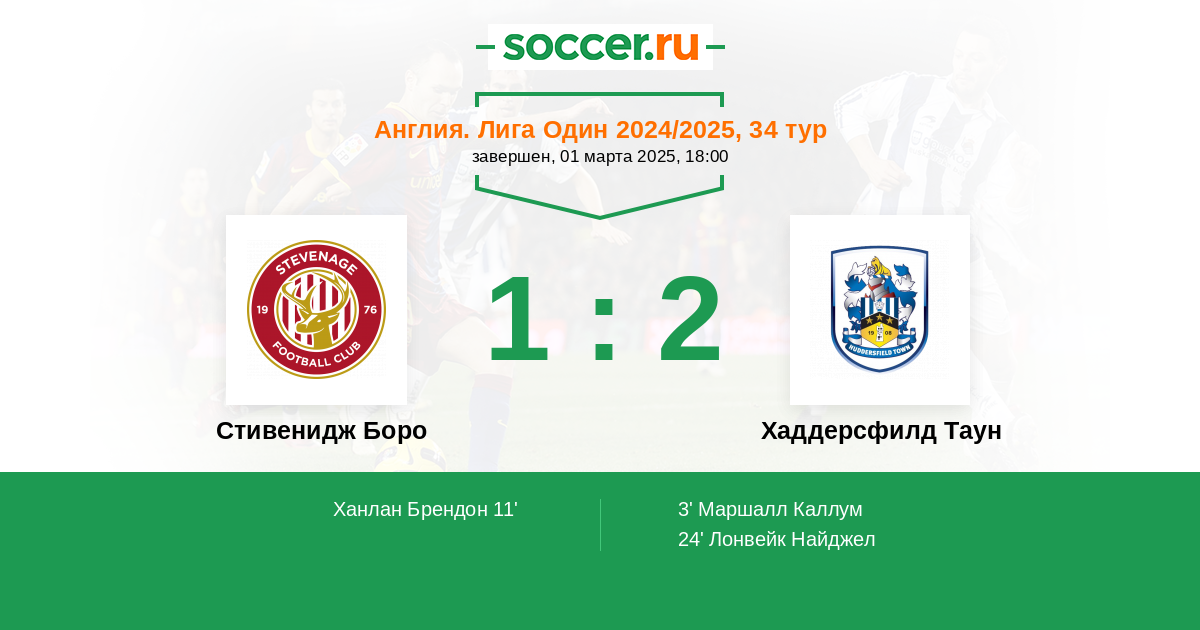 Протокол матча Стивенидж Боро против Хаддерсфилд Таун