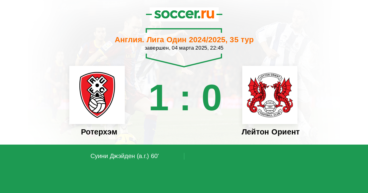 Протокол матча Ротерхэм против Лейтон Ориент