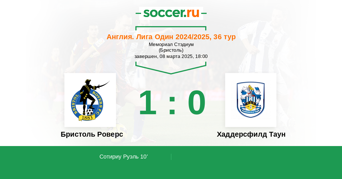 Протокол матча Бристоль Роверс против Хаддерсфилд Таун