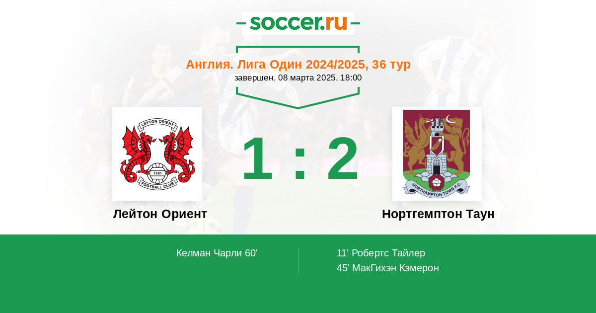 Протокол матча Лейтон Ориент против Нортгемптон Таун