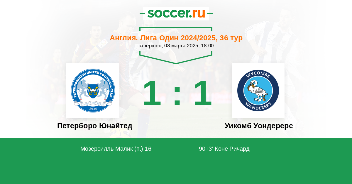 Протокол матча Петерборо Юнайтед против Уикомб Уондерерс