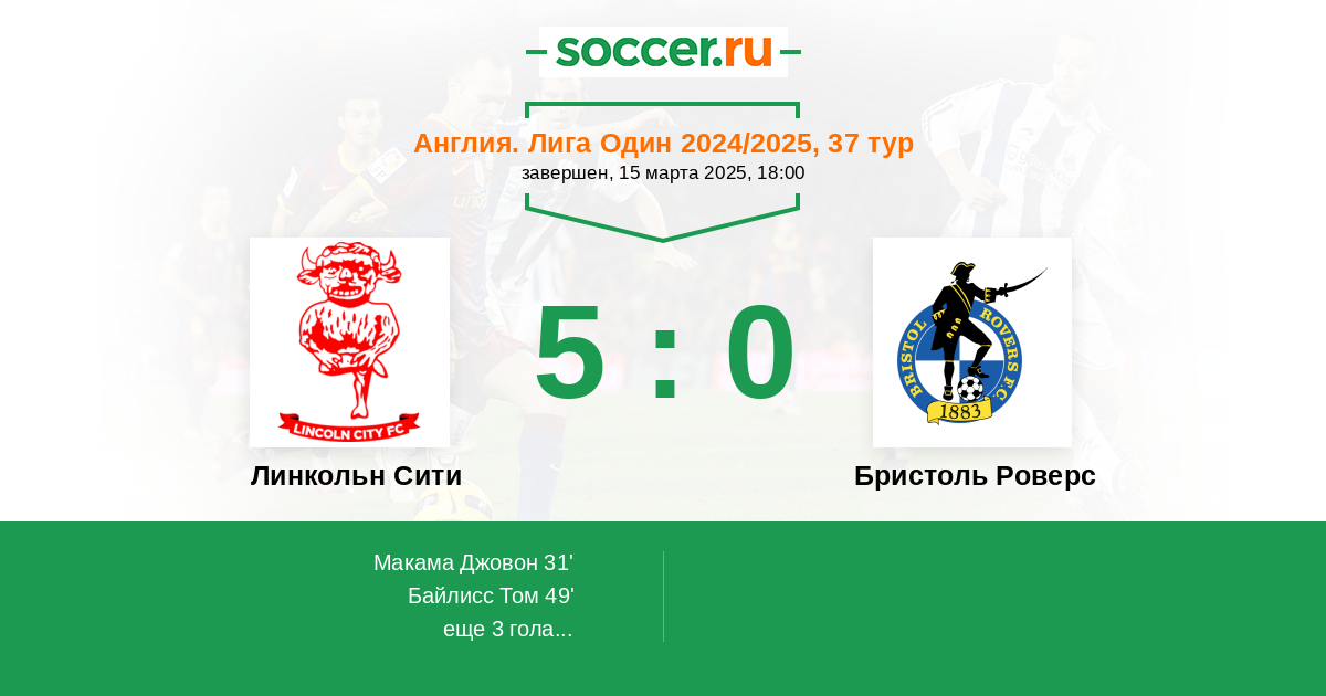 Протокол матча Линкольн Сити против Бристоль Роверс
