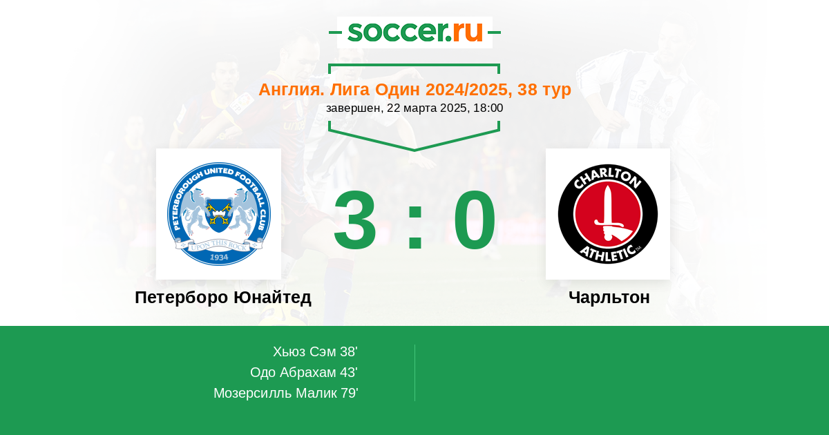 Протокол матча Петерборо Юнайтед против Чарльтон