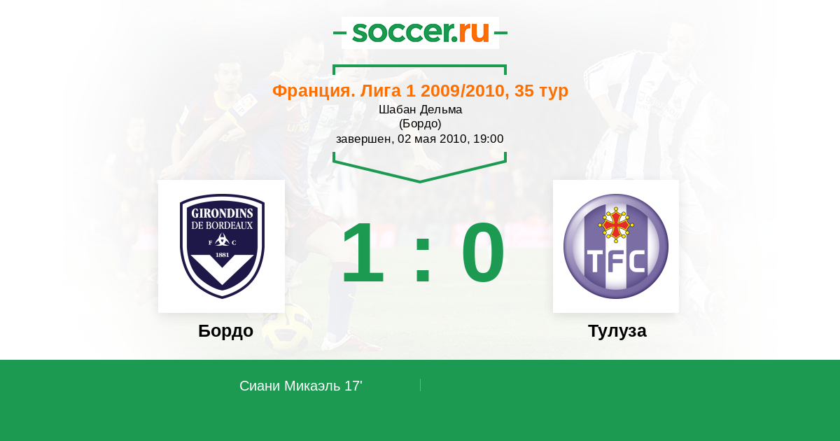 Протокол матча Бордо против Тулуза