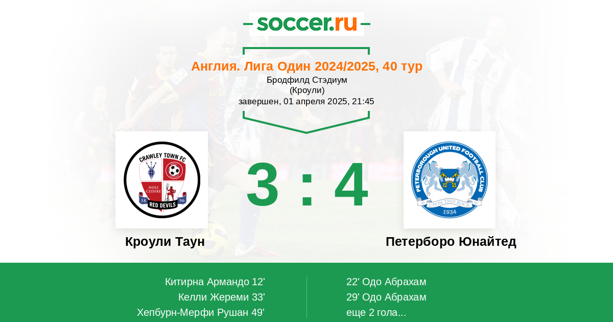 Протокол матча Кроули Таун против Петерборо Юнайтед
