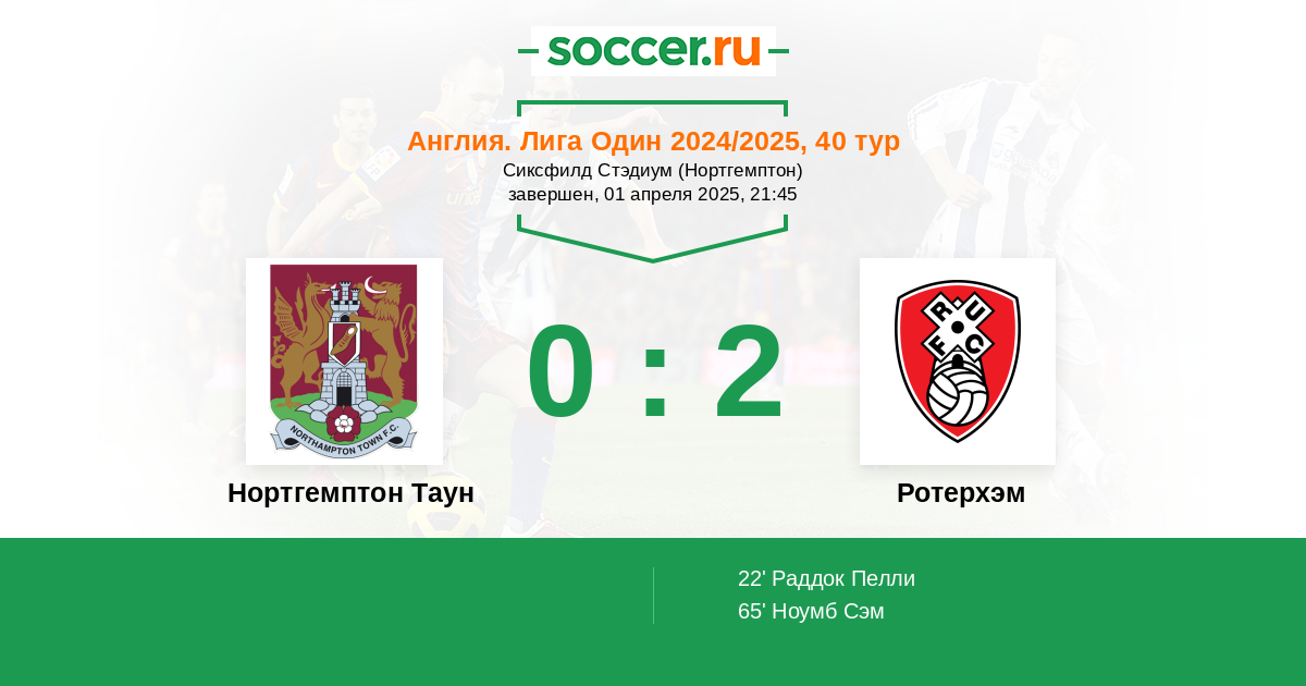 Протокол матча Нортгемптон Таун против Ротерхэм