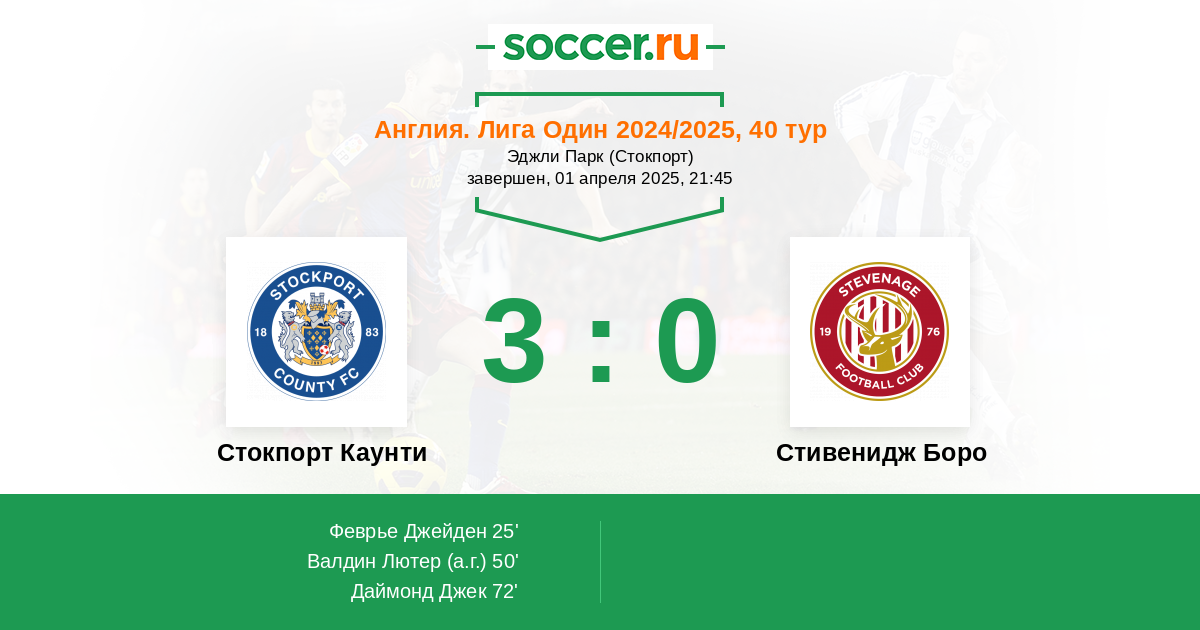 Протокол матча Стокпорт Каунти против Стивенидж Боро