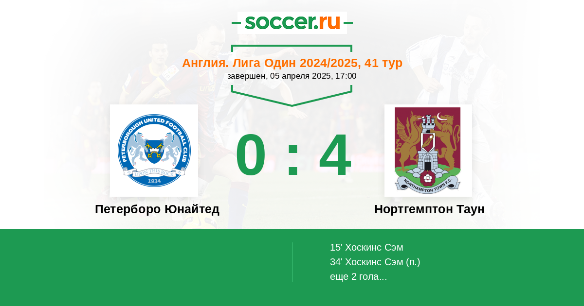 Протокол матча Петерборо Юнайтед против Нортгемптон Таун
