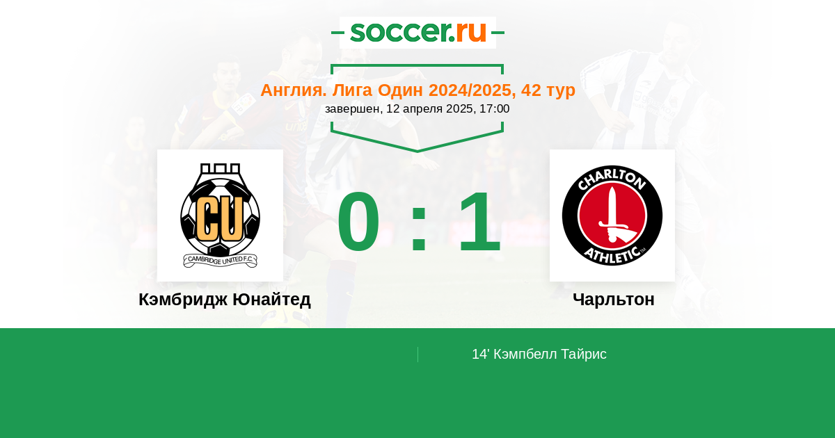 Протокол матча Кэмбридж Юнайтед против Чарльтон