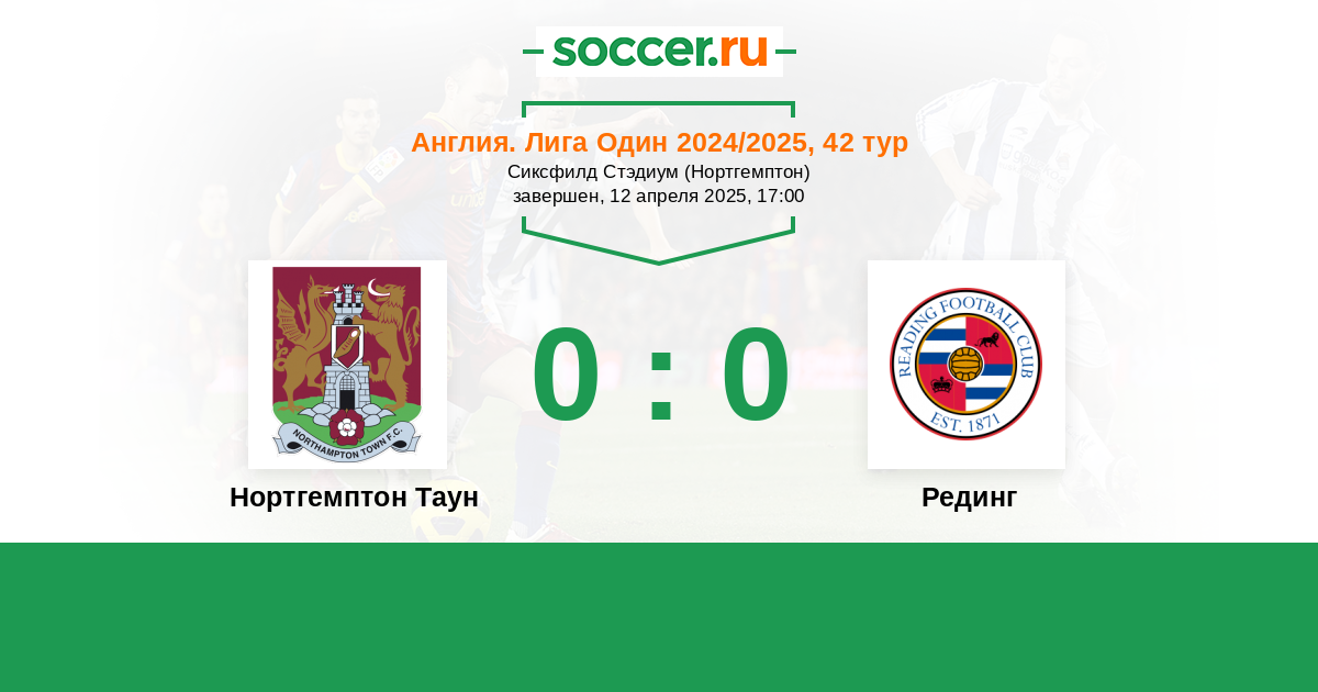Протокол матча Нортгемптон Таун против Рединг