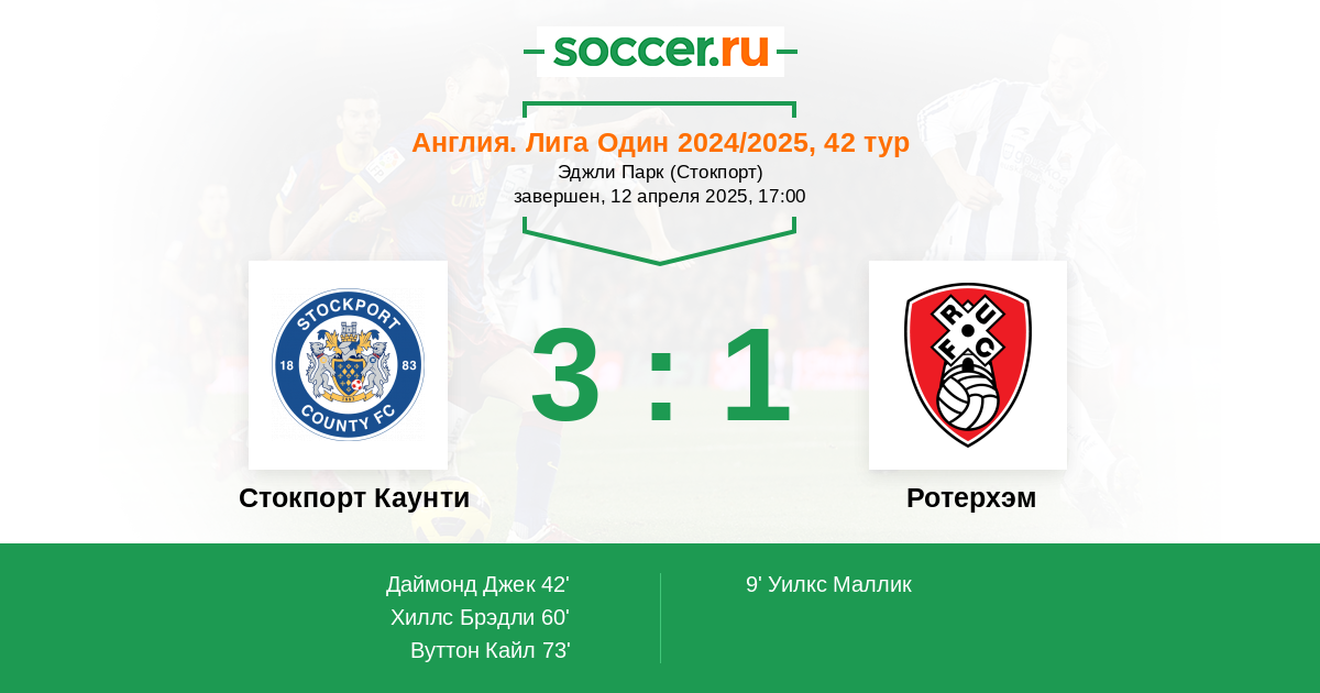 Протокол матча Стокпорт Каунти против Ротерхэм