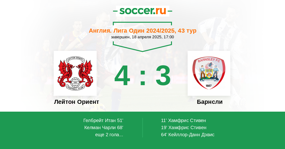 Протокол матча Лейтон Ориент против Барнсли